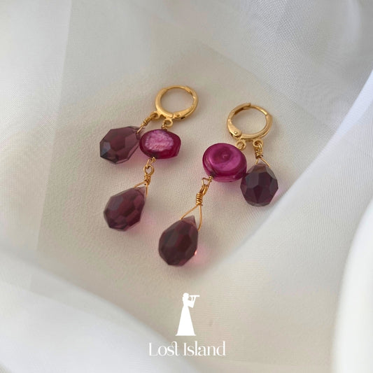 Brinco Lila Artesã Cristal Banho Ouro 18k