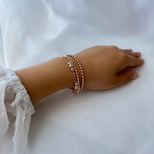 Pulseira 3 correntes esferas Banho Ouro 18k