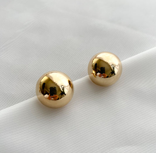 Brinco Fixo Meia Esfera Metal Banho Ouro 18k