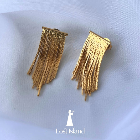 PromoçãoBrinco Franja Dourada Banho Ouro 18k
