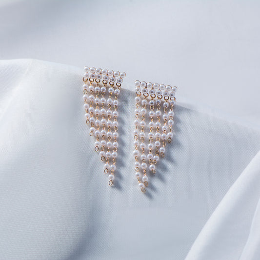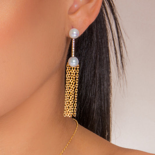 Ear Jacket 3 peças Pérola e Franja Banho 18k