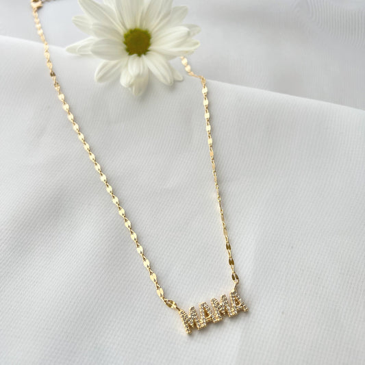Colar Mãe Letras Cravejado Zircônia Luxo Banho Ouro 18k