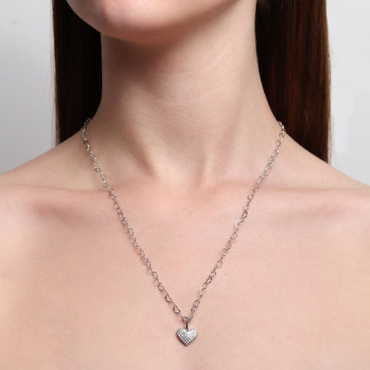 Colar Corrente Coração com Pingente Coração Banho Ródio