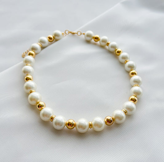 Colar Pérolas e Esferas de Metal no Banho Ouro 18k