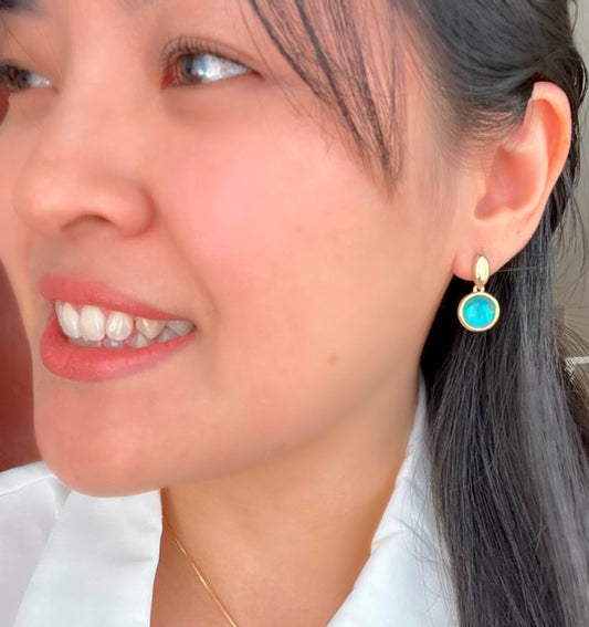 Brinco Madrepérola Azul com Gancho Banho Ouro 18k