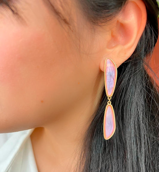 Brinco Festa Madrepérola Rosa Banho Ouro 18k