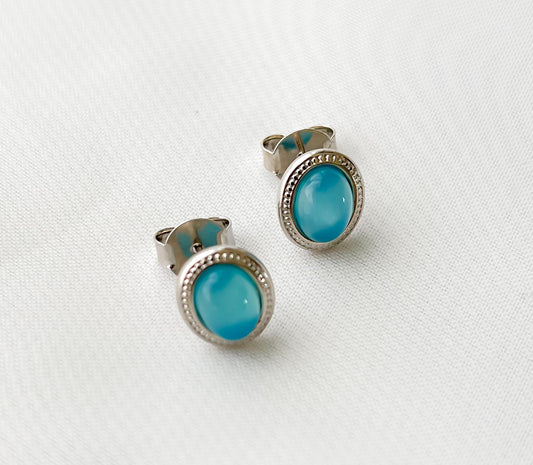 Brinco Valência Pedra Natural Ágata Azul