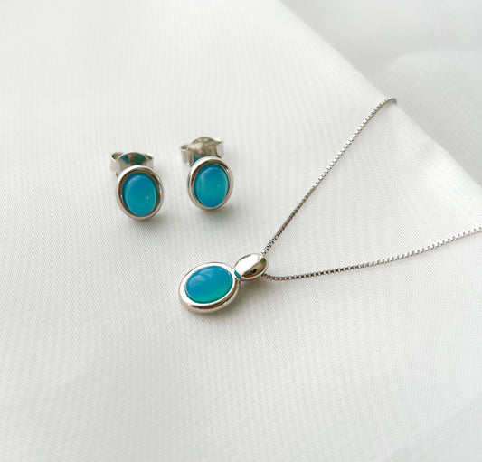 Conjunto Íris de Pedra Natural Banhado no Ródio