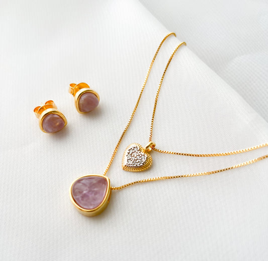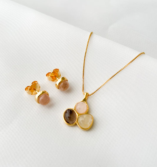 Conjunto Tesouro Pedras Naturais Banhado a Ouro 18k