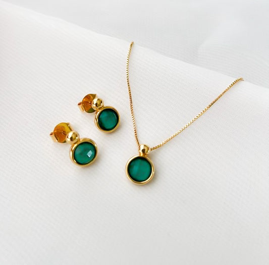 Conjunto Esmeralda Banhado a Ouro 18k