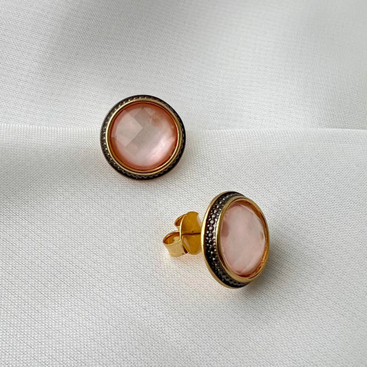 Brinco Clássico Madrepérola Rosa Banho Ouro 18k