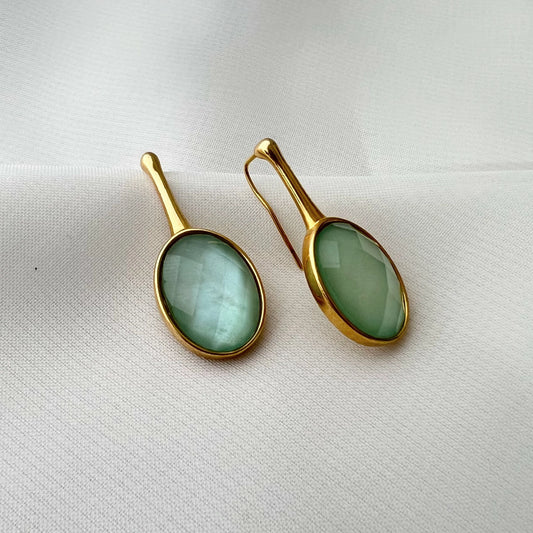Brinco Oval Esmeralda Banho a Ouro 18k