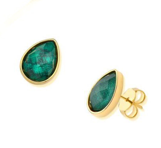Brinco Gota Esmeralda Banhado a Ouro 18k