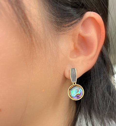 Brinco Abalone com Base Pontilhada em Ródio Negro Banho Ouro 18k