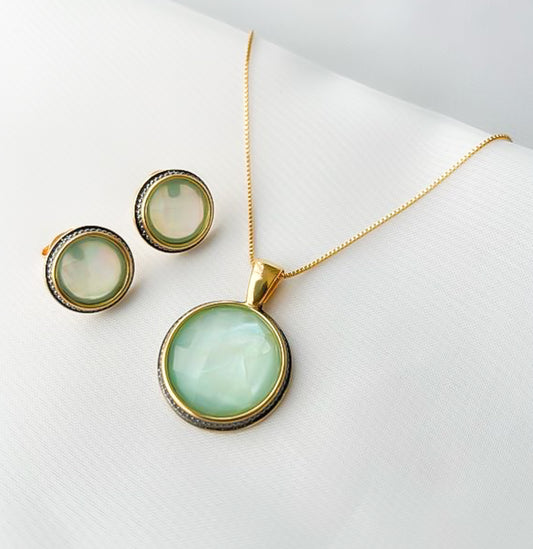 Conjunto Madrepérola Azul Banho Ouro 18k