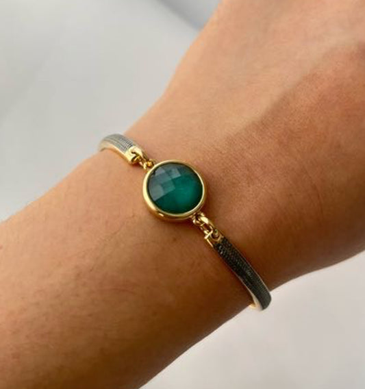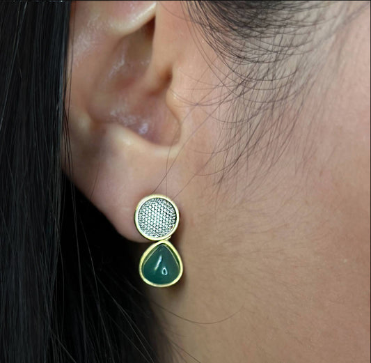 Brinco Ágata Verde Vintage Banhado Ouro 18k