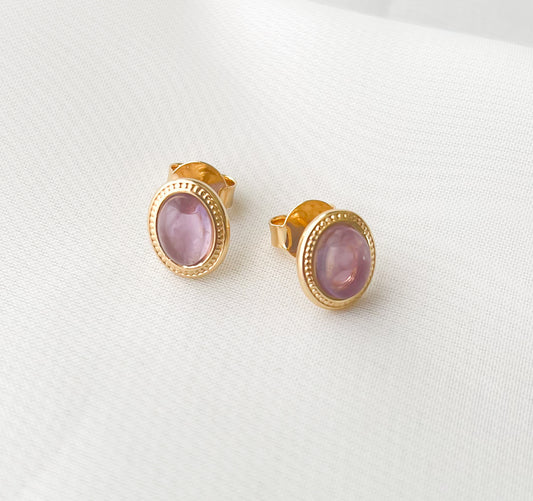 Brinco Vintage Pedra Natural Ametista Banhado Ouro 18k