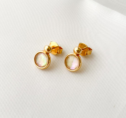 Brinco Clássico Madrepérola Rosa Banho Ouro 18k