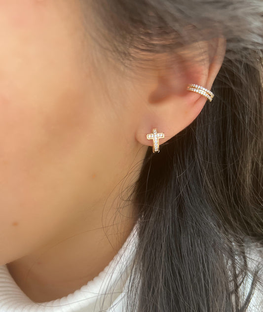 Brinco Mini Argola Cruz Cravejado Zircônia Banho Ouro 18k