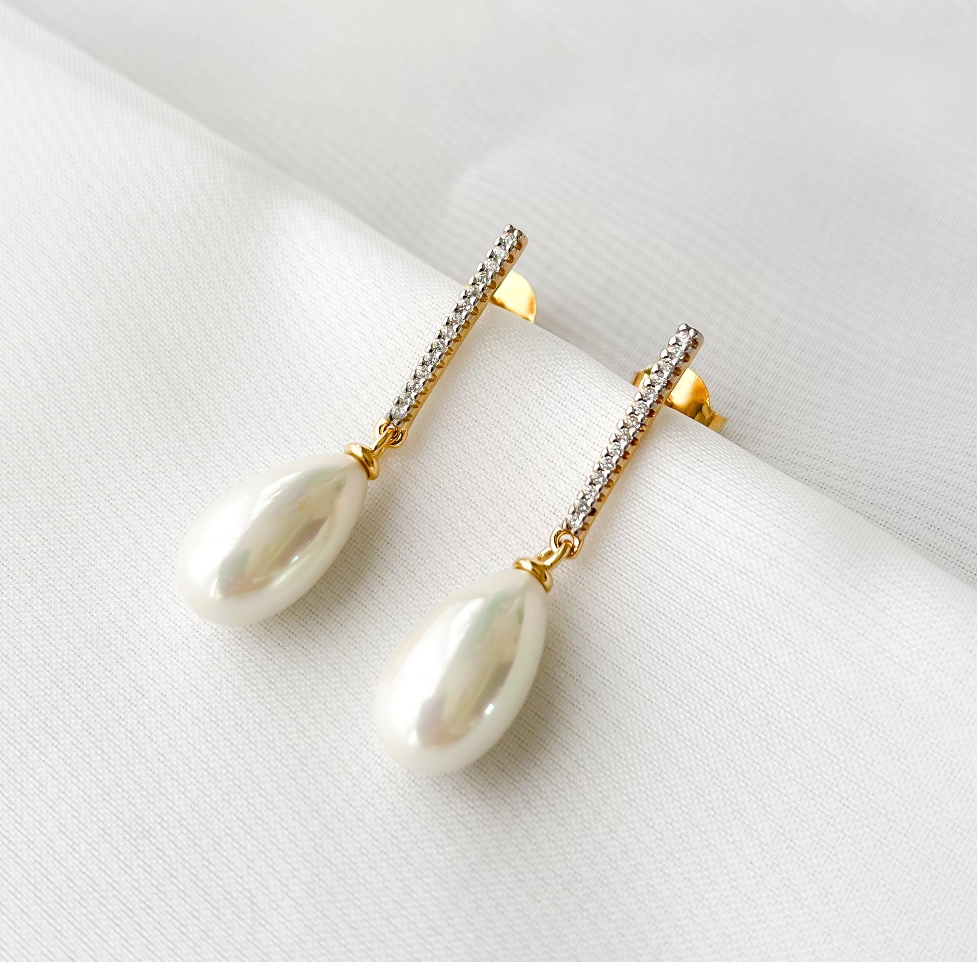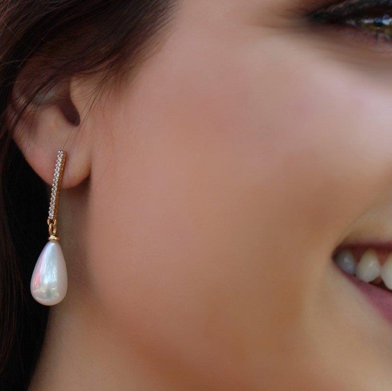 Brinco Cravejado em Zircônias Banhado a Ouro e Pérola Shell